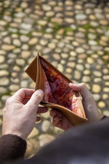 Crafted from the finest durable natural leather and artwork printed waterproof lining, as a unique touch, this wallet is designed in an elegant, slim profile that opens to reveal multiple pockets for storing your cards, cash and coins.