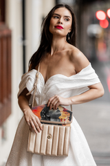 One bag, many occasions. The detachable strap offers an over the shoulder everyday sophistication and defines a glamorous evening out as a clutch.